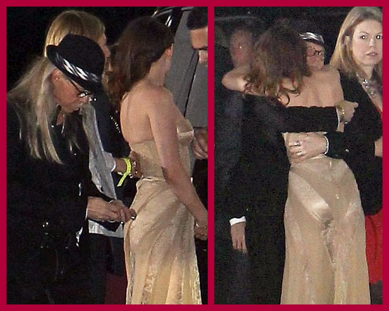 Com Centenas de fãs acampados na frente do Teatro Nokia em Los Angeles, para ver o elenco da Saga "Amanhecer Parte 2" a sensação foi o look estilo Old-Hollywood de Kristen Stewart com seu vestido de renda transparente que deixava a mostra o seu Bumbum, e sua mini-calcinha de ouro, para deleite dos fãs.